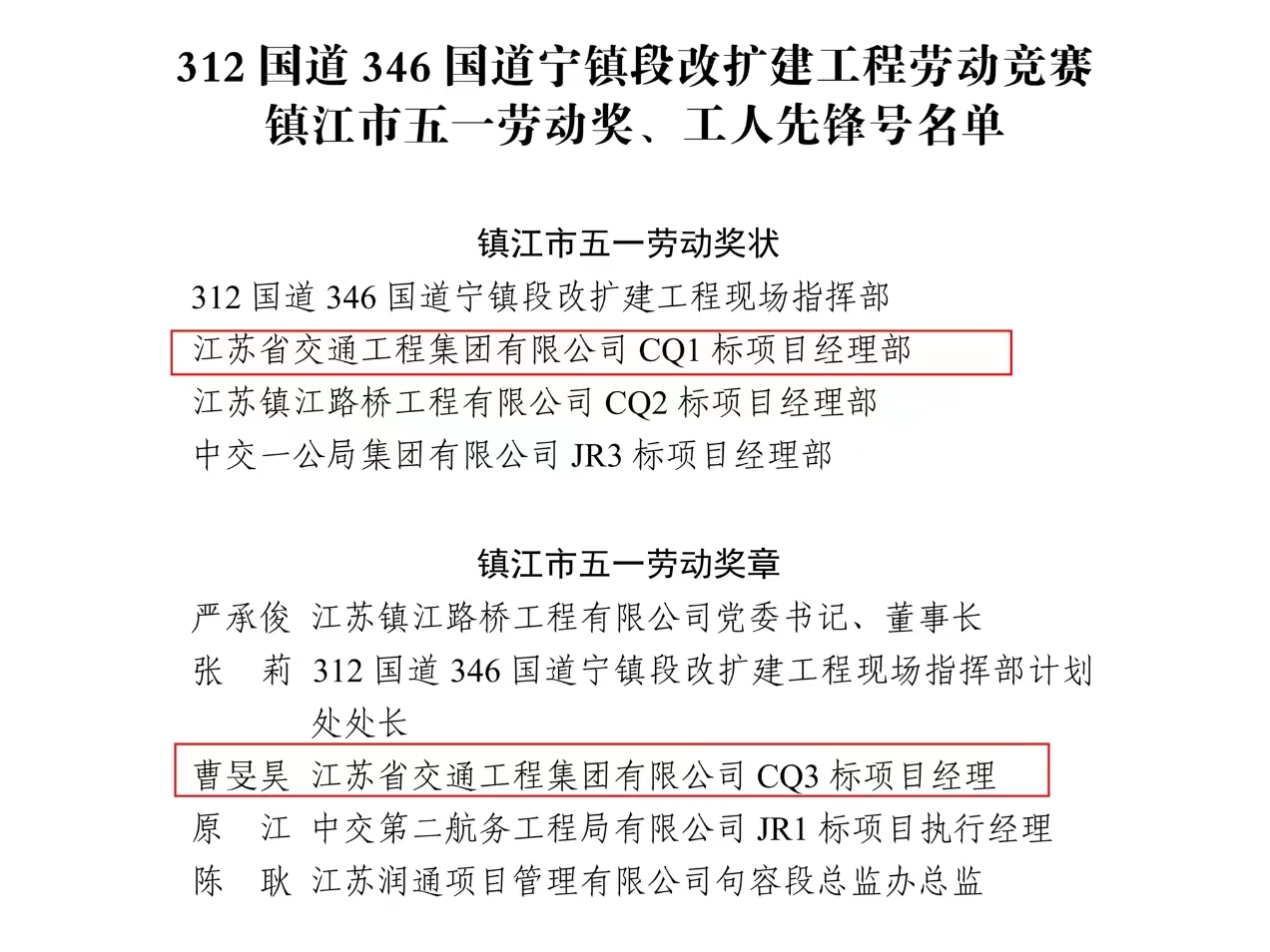 █江蘇交工項(xiàng)目與個(gè)人榜上有名