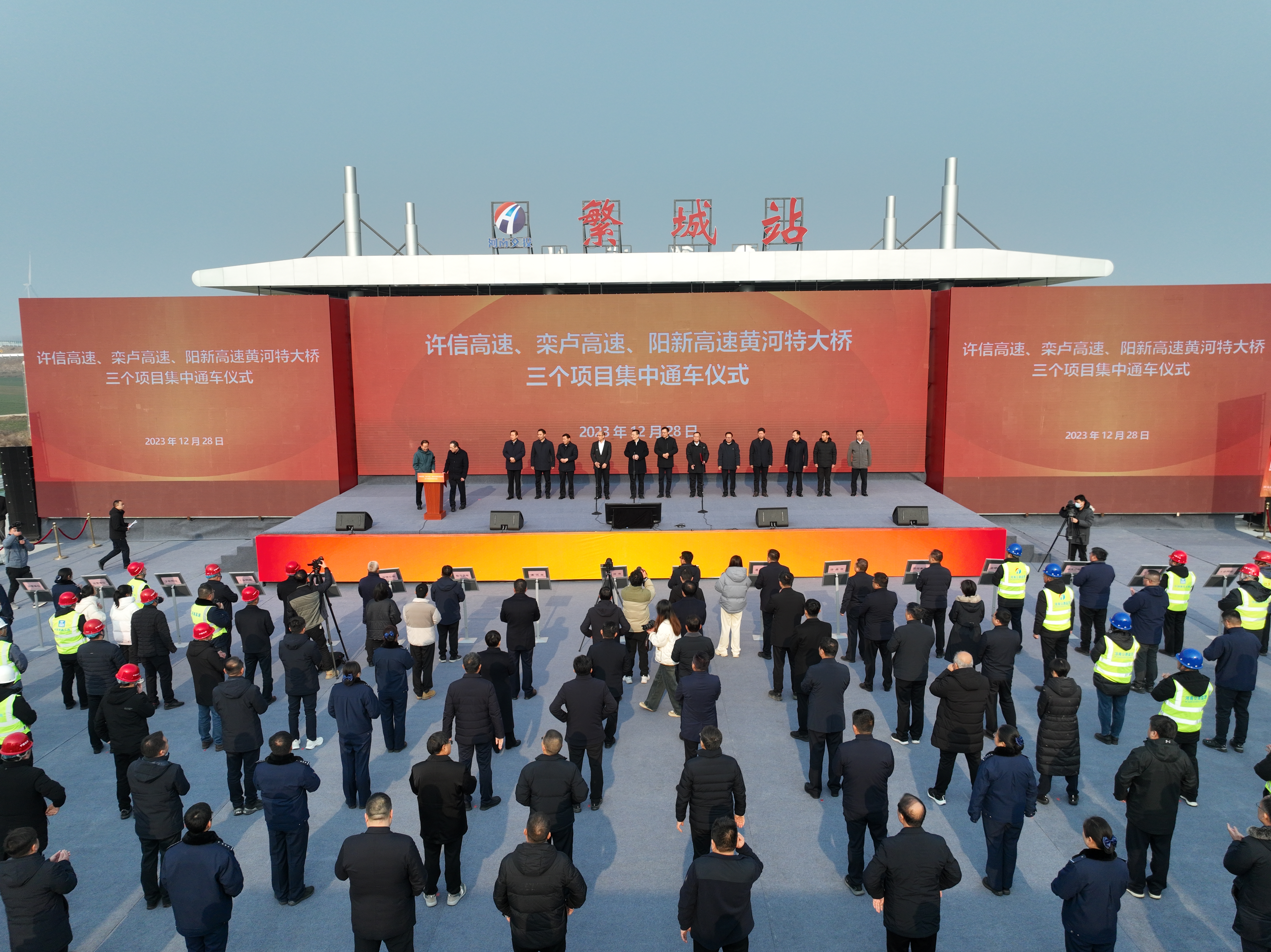 12月28日,許昌至信陽(yáng)高速公路通車現(xiàn)場(chǎng)會(huì)在河南漯河市臨潁縣舉行。河南省交通運(yùn)輸廳黨組書記、廳長(zhǎng)高建立出席現(xiàn)場(chǎng)會(huì)并宣布項(xiàng)目正式建成通車。江蘇交工集團(tuán)承擔(dān)著許信高速第4、8合同段施工任務(wù),其中,第8合同段已于2022年12月26日順利通車。